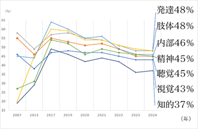 以下、障害種別:回答数 率 前回比 人数 増減 平均の順
